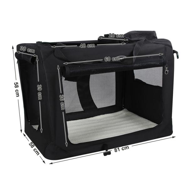 Crafted from 19 mm metal tubes, the wholesale cat crate is robust and stable to keep its shape. Oxford fabric and the soft fleece mat ensure both durability and comfort of the dog carrier when your puppy stays inside. The mesh fabric doors on the sides and up top let your canine friends get a bit of fresh air while allowing alternative access. Two pockets are handy for treats and toys. What else? The dog carrier is easy to assemble and disassemble with plug-in connectors, simply fold it up for flat storage.